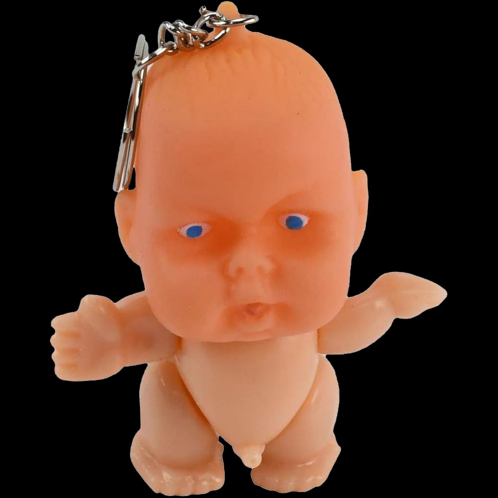 Fill this novelty baby keyring with water, squeeze his big head and get a fun surprise when he squirts water out of his pee pee.