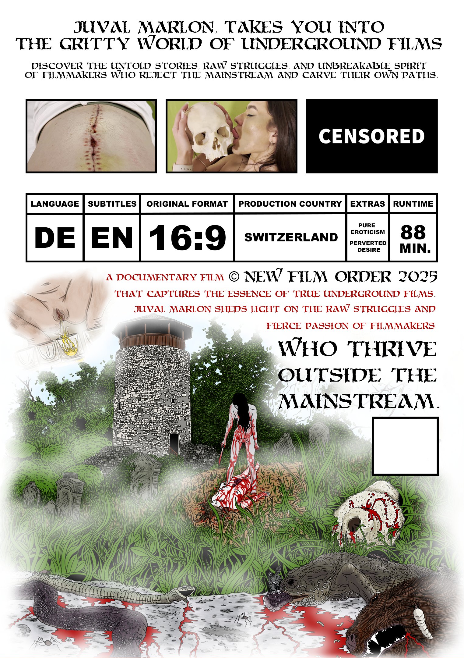 A documentary film that captures the essence of true underground cinema. Juval Marlon sheds light on the raw struggles and fierce passion of filmmakers who thrive outside the mainstream.